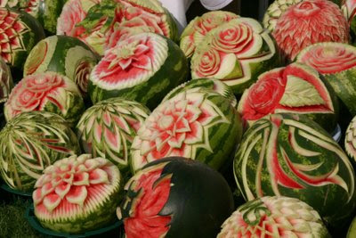Creaciones en frutas y verduras naturales .Como elemento novedoso.Reemplazar el centro de flores de las mesas por una espectacular papaya, sandía o melón tallado en forma de flor, da el cariz elegante y distinguido que toda empresa desea para cada acto.La decoración con frutas y verduras ofrece insospechadas posibilidades.Creaciones originales que despiertan el interés de todo el que las contempla.Con la talla de frutas y verduras conseguirá que lo estético supere la tendencia natural de degustar un producto de por sí apetitoso y comer pasa a un segundo plano.Cada pieza debe hacerse en función de las características intrínsecas de su materia prima.Es un arte dirigido tanto al mundo de la gastronomía como a todas las personas que quieran mejorar la presentación de sus comidas, fiestas o buffets.Frutas talladas para integrar en el conjunto de su evento empresarial.CHEF FERNANDO VILCA.SANDIA TALLADAS EN IMÁGENES